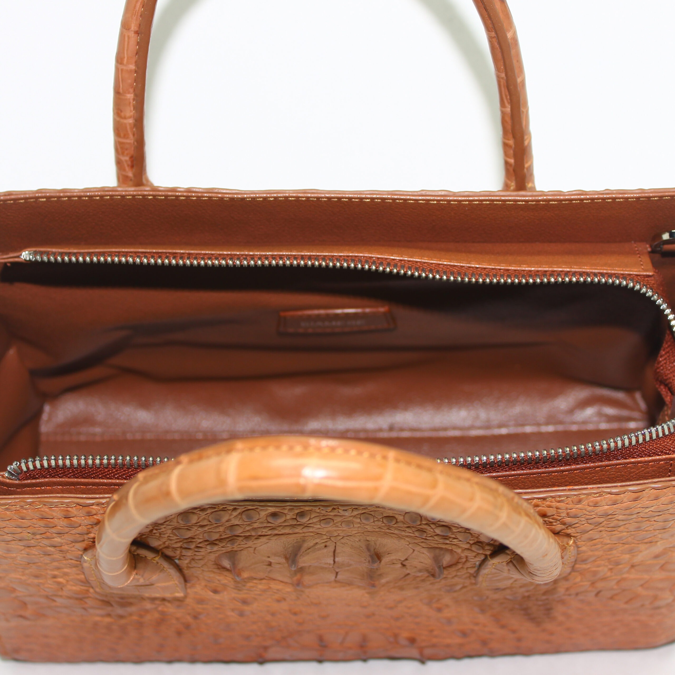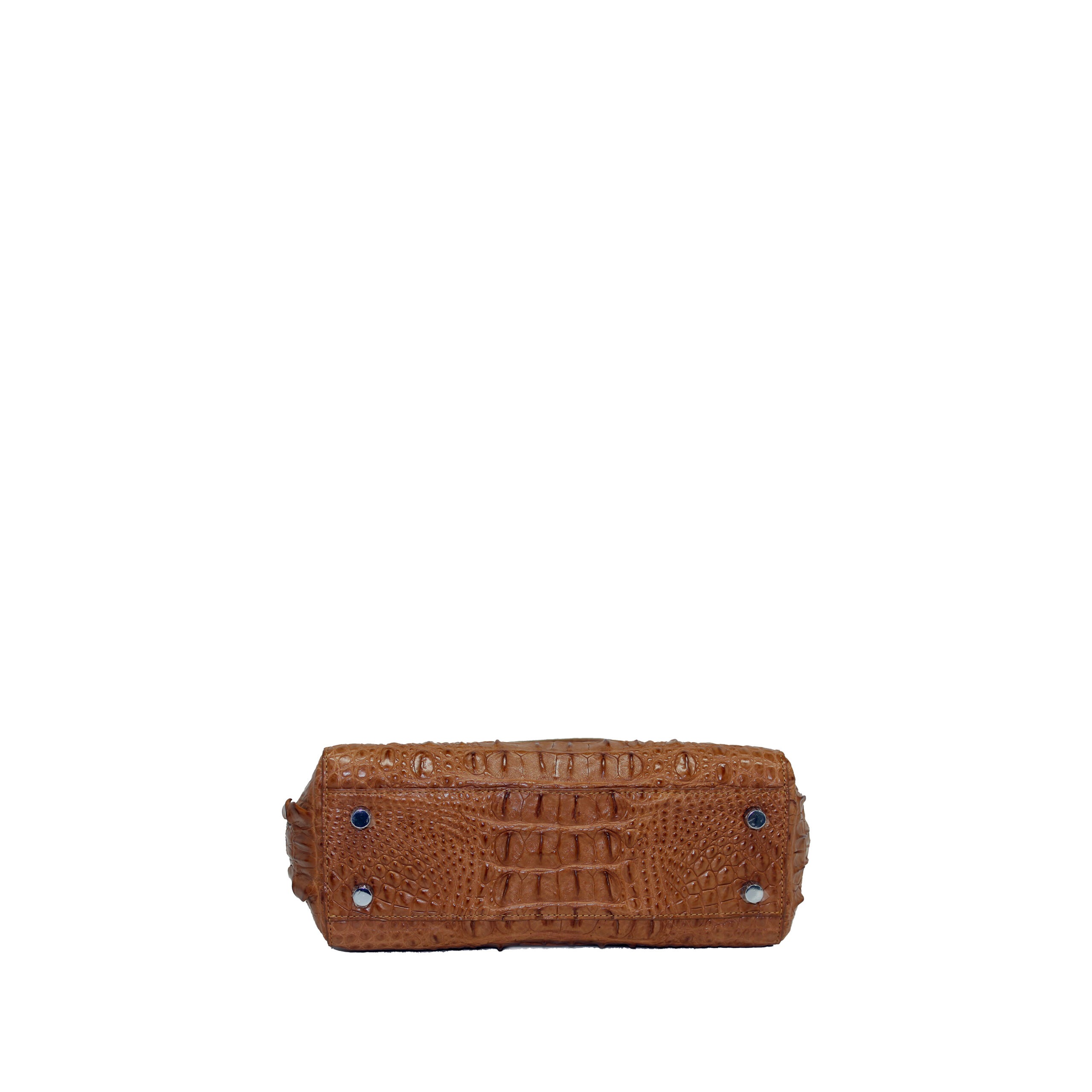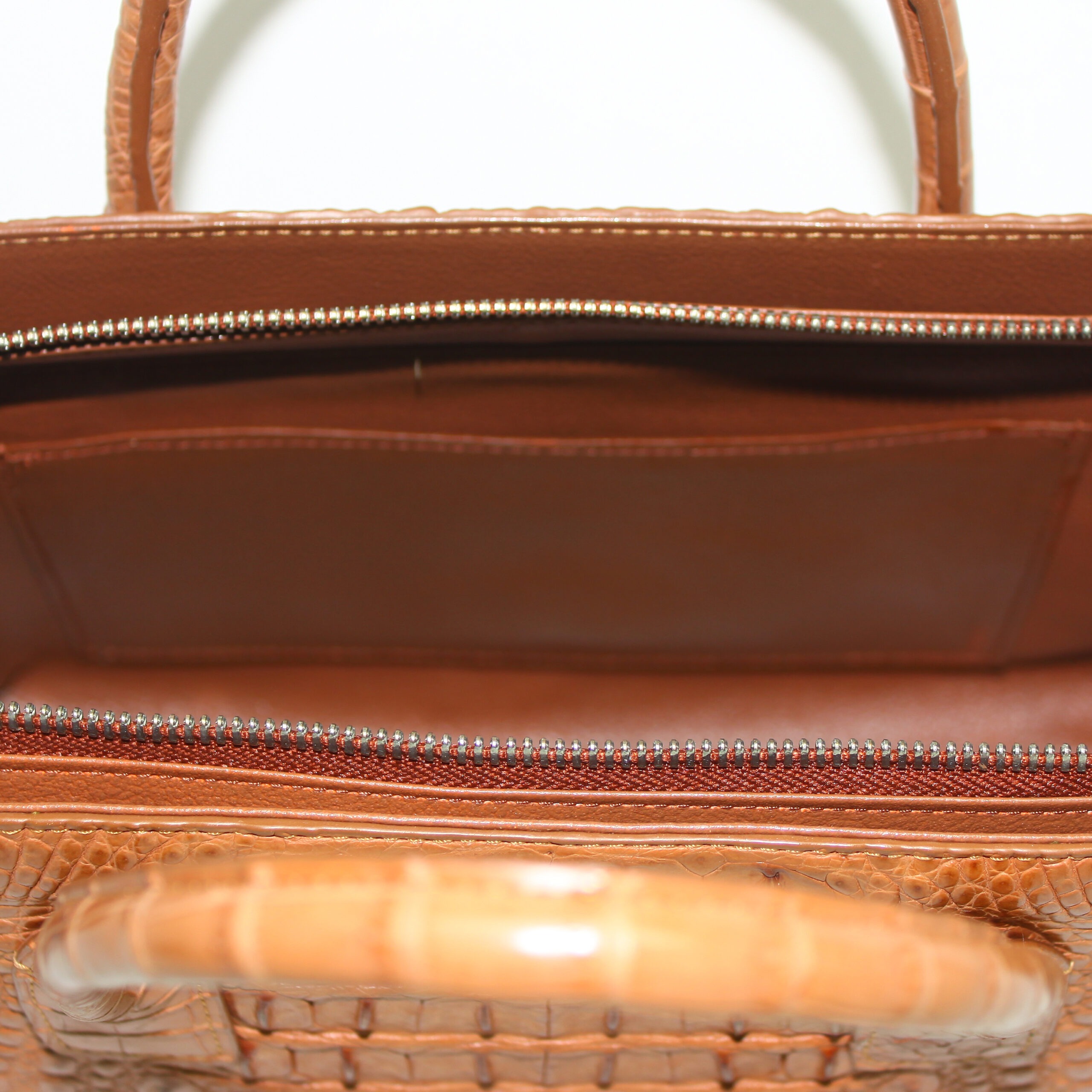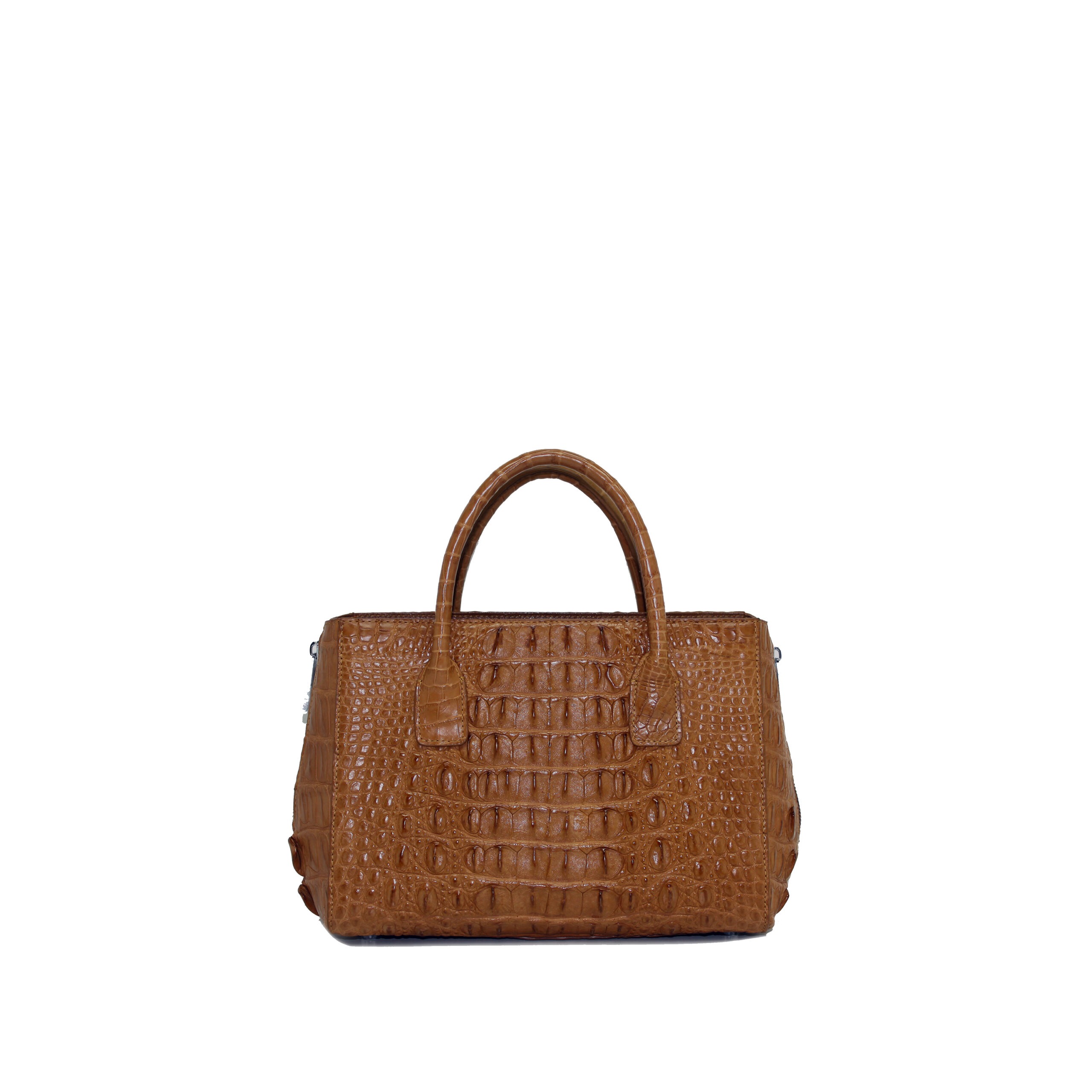 Crafted from premium crocodile leather, this handbag features a structured rectangular shape and a striking aurora purple hue. Its sleek and glossy finish, along with the distinctive crocodile skin texture, makes it a standout piece. The slightly curved top handle with gold hardware and the engraved “JANEJIRA” clasp add a touch of sophistication and elegance. Dimensions : W22 x H19 x D11 cm Material : Crocodile leather , Lining – Sheep skin Interior: 2 compartments Hardware: 18k gold-plated brass. Weight: 0.270 kg approximately Handmade Made in Thailand