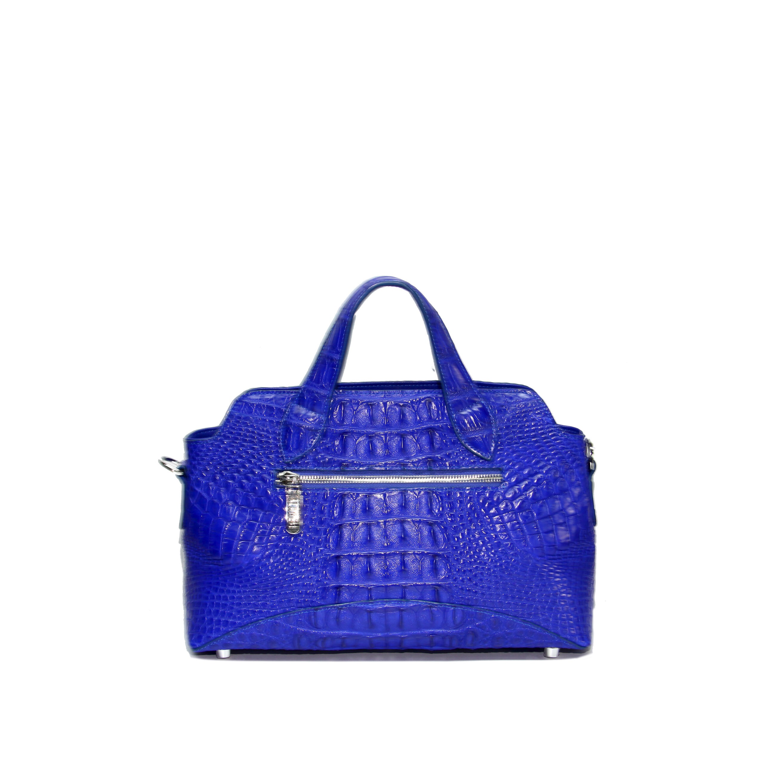 HCB-A040 Compact luxury handbag crafted from genuine crocodile leather with lambskin interior. Features two handles and a detachable long strap for versatile carry.