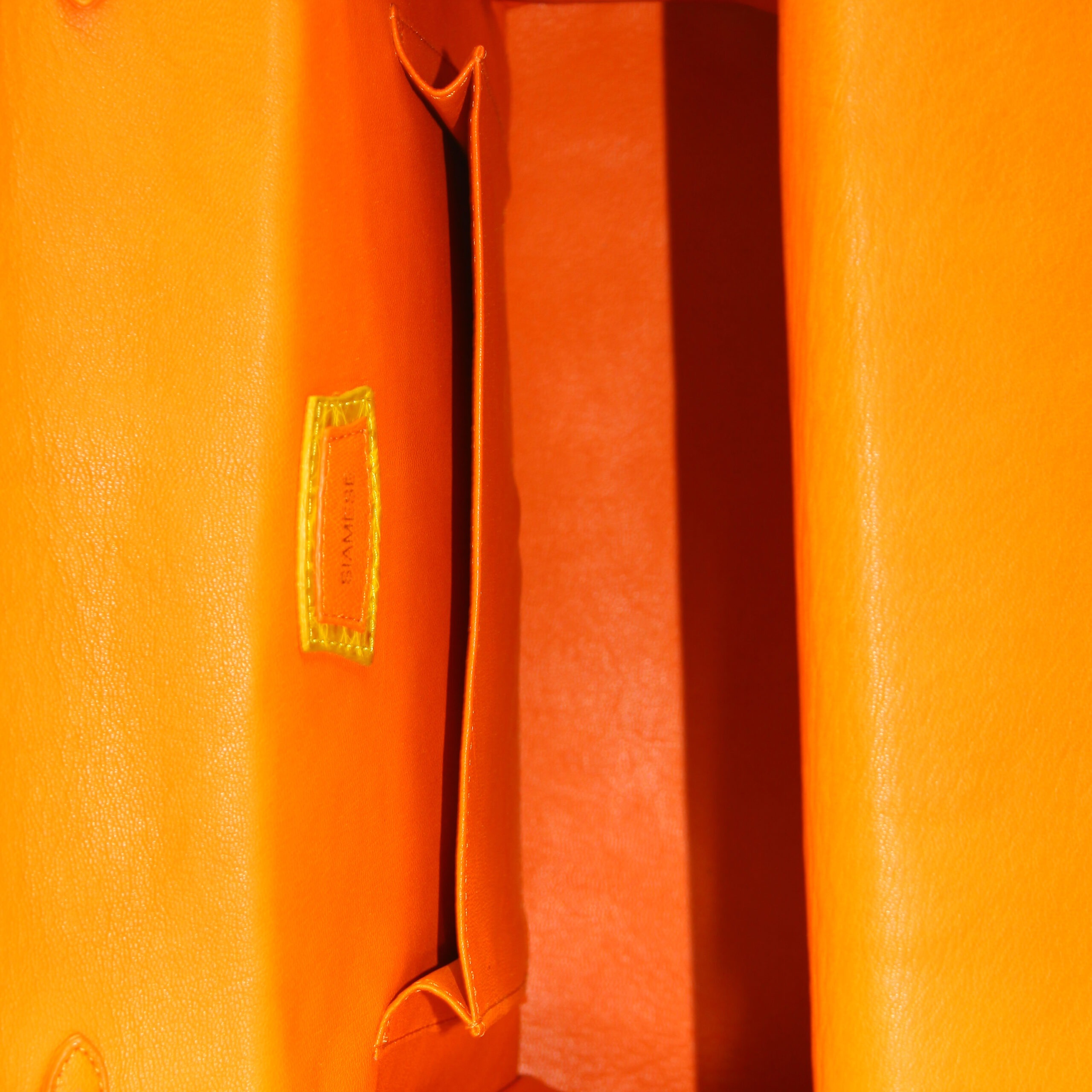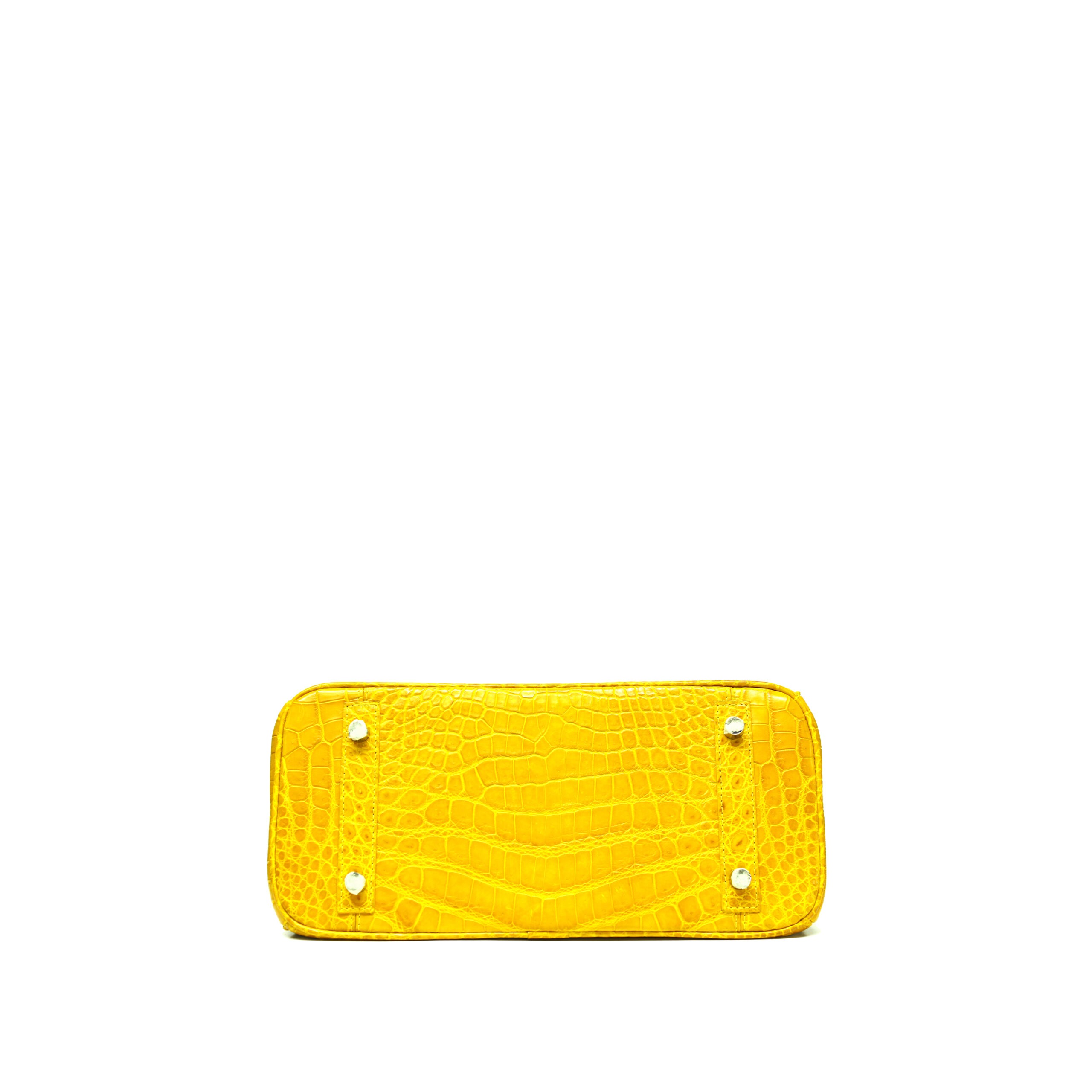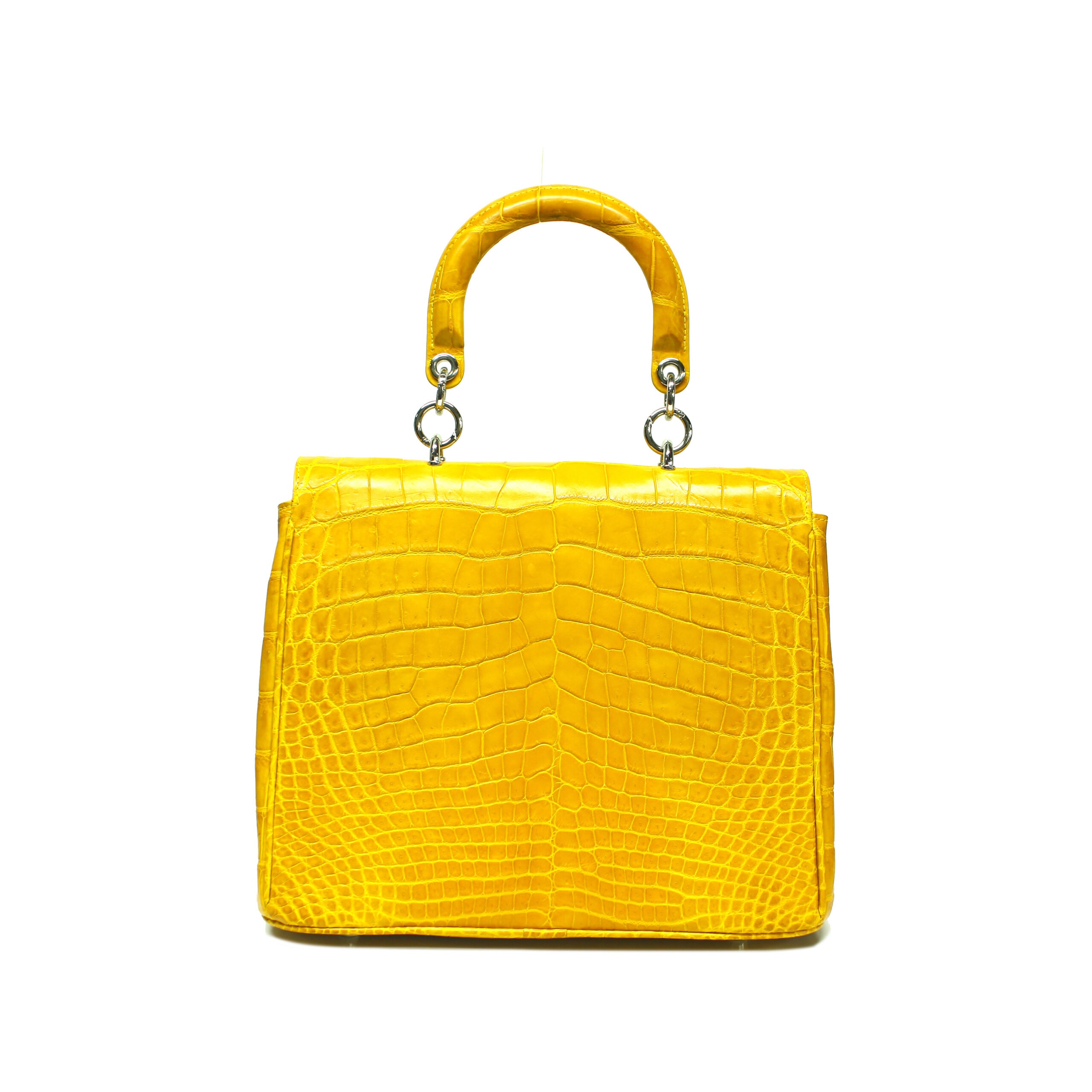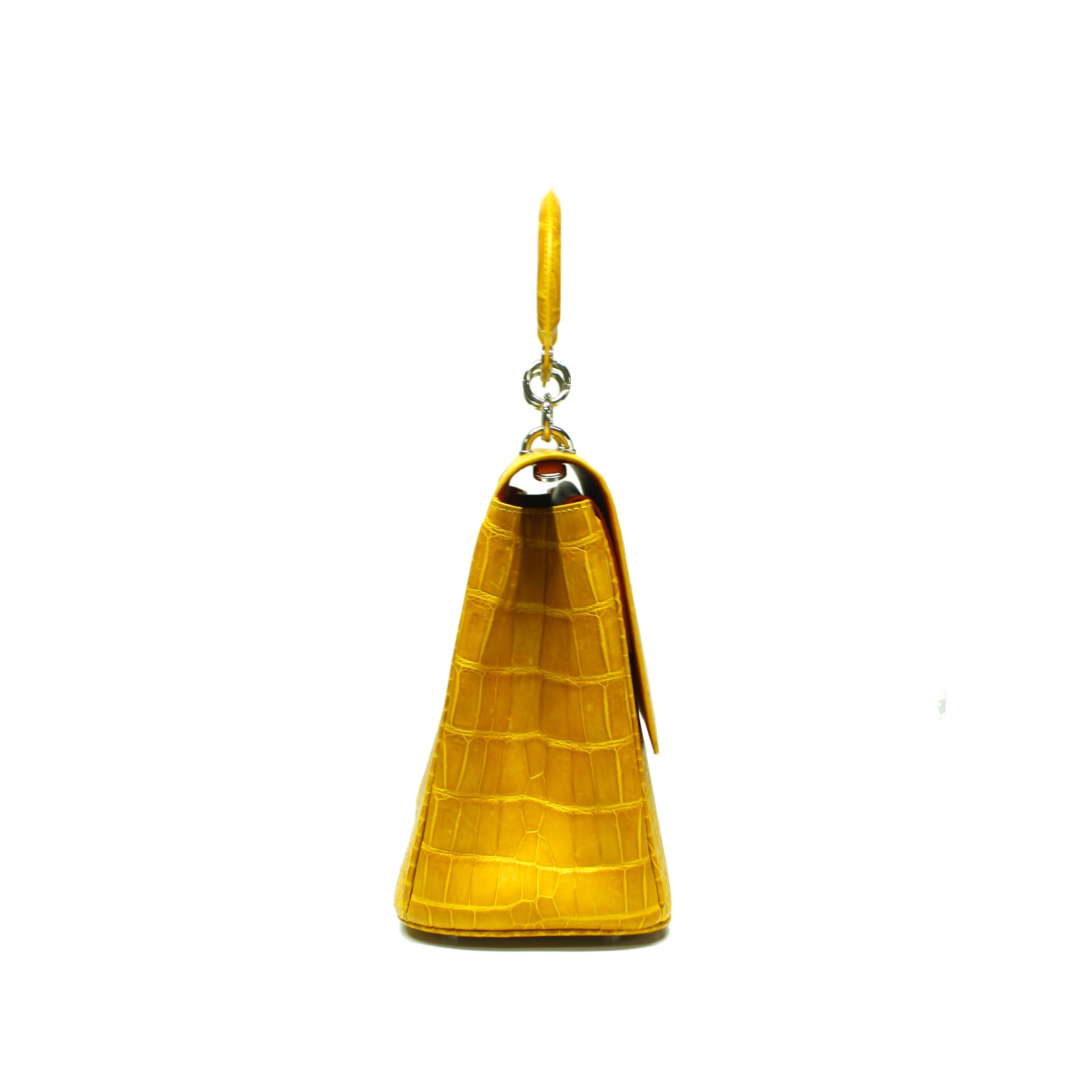 Crafted from premium crocodile leather, this handbag features a structured rectangular shape and a striking aurora purple hue. Its sleek and glossy finish, along with the distinctive crocodile skin texture, makes it a standout piece. The slightly curved top handle with gold hardware and the engraved “JANEJIRA” clasp add a touch of sophistication and elegance. Dimensions : W22 x H19 x D11 cm Material : Crocodile leather , Lining – Sheep skin Interior: 2 compartments Hardware: 18k gold-plated brass. Weight: 0.270 kg approximately Handmade Made in Thailand